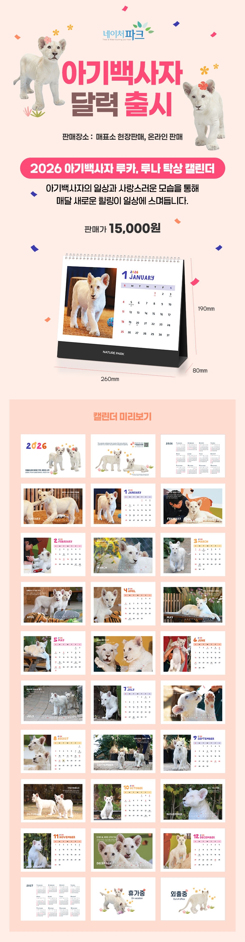 2026 아기백사자 루카,루나 달력 출시!! 매표소 현장판매