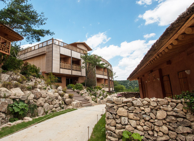 Feeling the sound of the forest, the wind, the birds and the grass The environmentally friendly Hotel De Foret Clad with white clay and loess bricks A healthy resting place that heals the soul overnight.