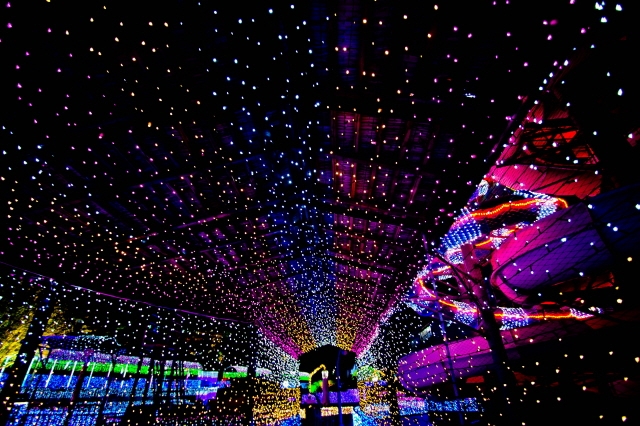 야외워터파크를 다덮고도 배경인 숲 포레스트12 일대를 빛으로 덮었으니 그 규모는