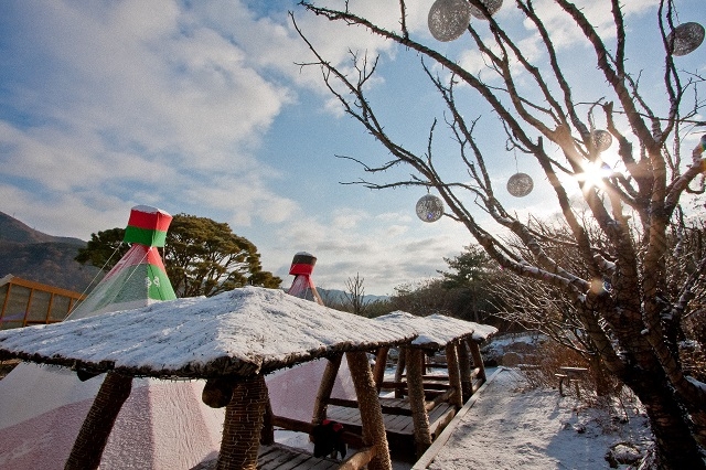 버섯마루, 그리고 인디언텐트 티피도...흰눈으로 덮혔네요.